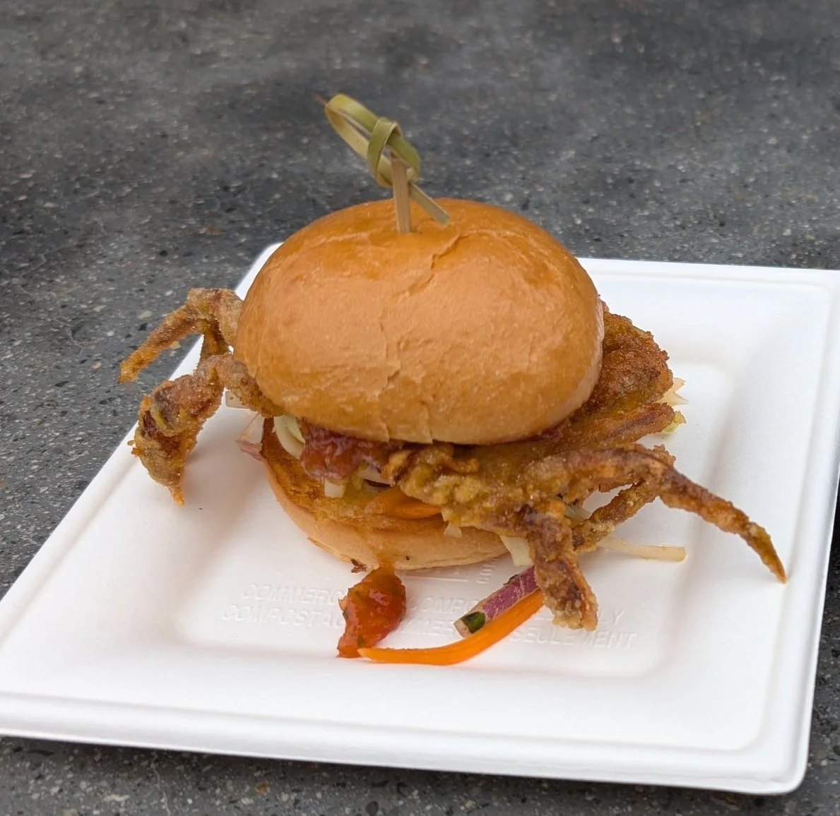 The next item on our best of the fest list is another one I was a bit hesitant to try, the Soft Shell Crab Slider from Opening Eats. I wasn’t thrilled about trying something that looked like it could get up off the plate and walk away, but I am so glad I tried it! This was so good, had a nice crunch, wasn’t fishy at all, and the toppings were delicious.