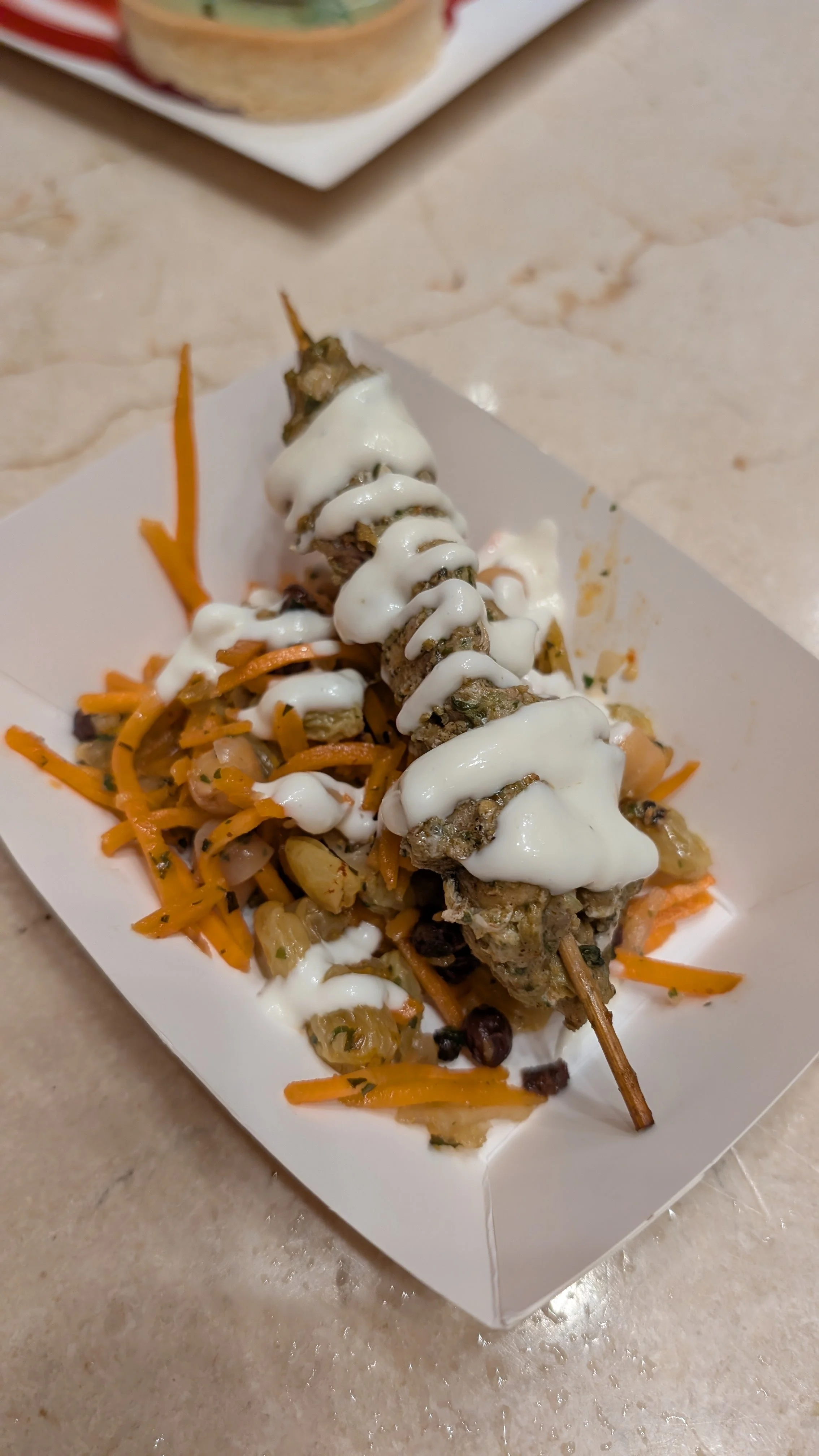At this point my stomach was being a bit grumpy (think I was still feeling the food poisoning from the previous night) and all that sounded appealing was very light food like veggies and some lean meat, so the kabob fit the bill nicely. I did try a bit of the tart, and my goodness that thing is good! If my stomach was feeling better I would have gotten my own!