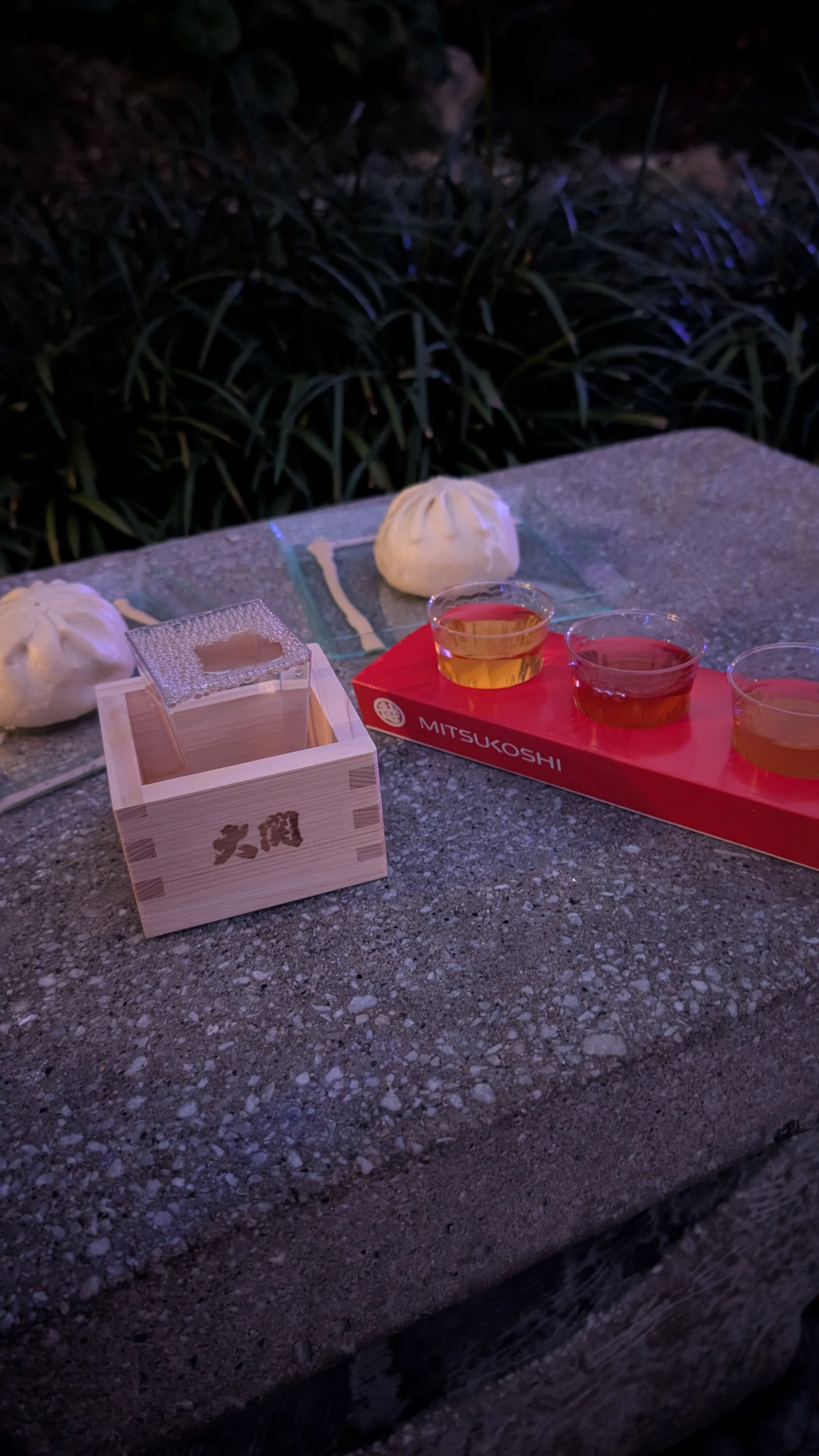 We were still a bit hungry after finishing up in France, so made our way over to Japan where we both got the Wagyu bun, I got the Masu sake in the personalized wooden cup, and mom got the sake flight.